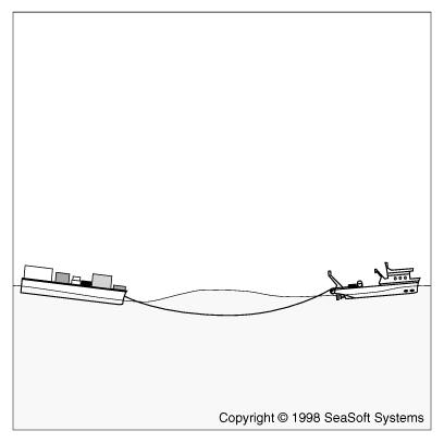 Towsim is a comprehensive software tool used for design, evaluation, maintenance and failure analysis of simple or composite towlines used in open-ocean tug-barge-towline systems. It provides detailed towline and vessel performance data under arbitrary water depth and environmental conditions, including characteristic (r.m.s.) and peak towline loads in the forecast maximum storm for a particular route. The analysis can be used to optimize towline characteristics in trip planning for a specific route/environment and is suitable for on-board real-time use in an advisory capacity for setting optimal towline scope and/or optimal tug heading during storm penetration or survival preparations. Characteristics of the towline, including mass, hydrodynamic and elastic properties of each element of a multi-element towline, are fully specifiable. Tug-barge-towline systems are characterized by extreme nonlinearities at every phase of performance analysis; Towsim fully accommodates these nonlinearities at all levels, including system statics, quasi-statics (low-frequency oscillations, produced by variable wind and wave-drifting forces, with typical periods of oscillation of one to ten minutes) and dynamics (wave-induced oscillations with typical periods of 4 to 30 seconds). Direct comparison of Towsim's nonlinear dynamic load calculation with the quasi-static catenary calculation often used as an approximation is provided as an output option. Execution is carried out in the frequency domain, resulting in short running times and unambiguous predictions of statistical response values.